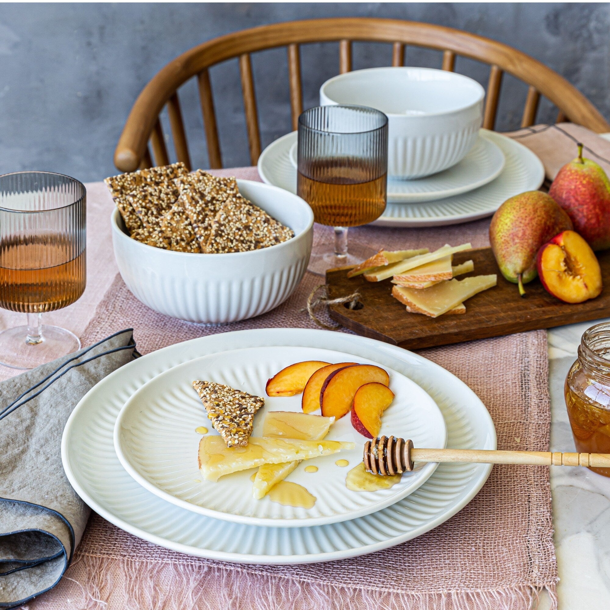 Over and Back White Porcelain 24pc Fluted Dinnerware Set -