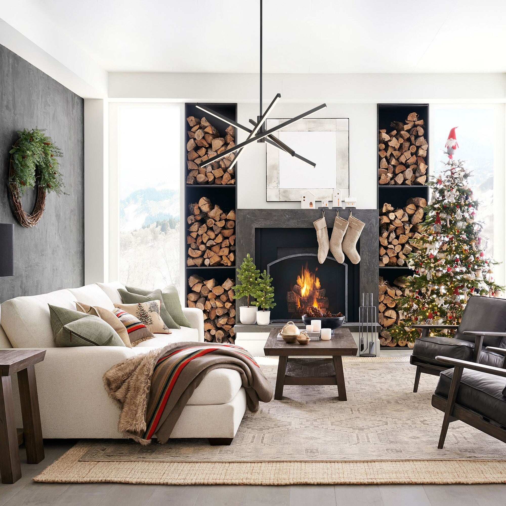 Black/ Gold Modern Aluminum LED Chandelier Linear Sputnik Ceiling Pendant Light for Living/ Dining Room/ Kitchen -