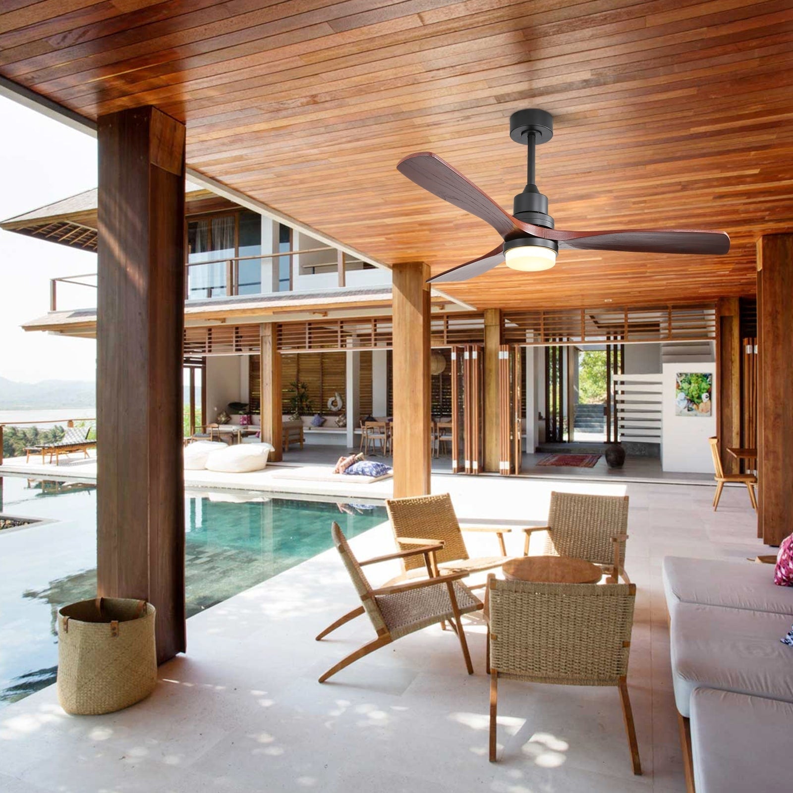 Sofucor 52 Indoor Wood Ceiling Fan Light with Remote, Integrated Light Optional -