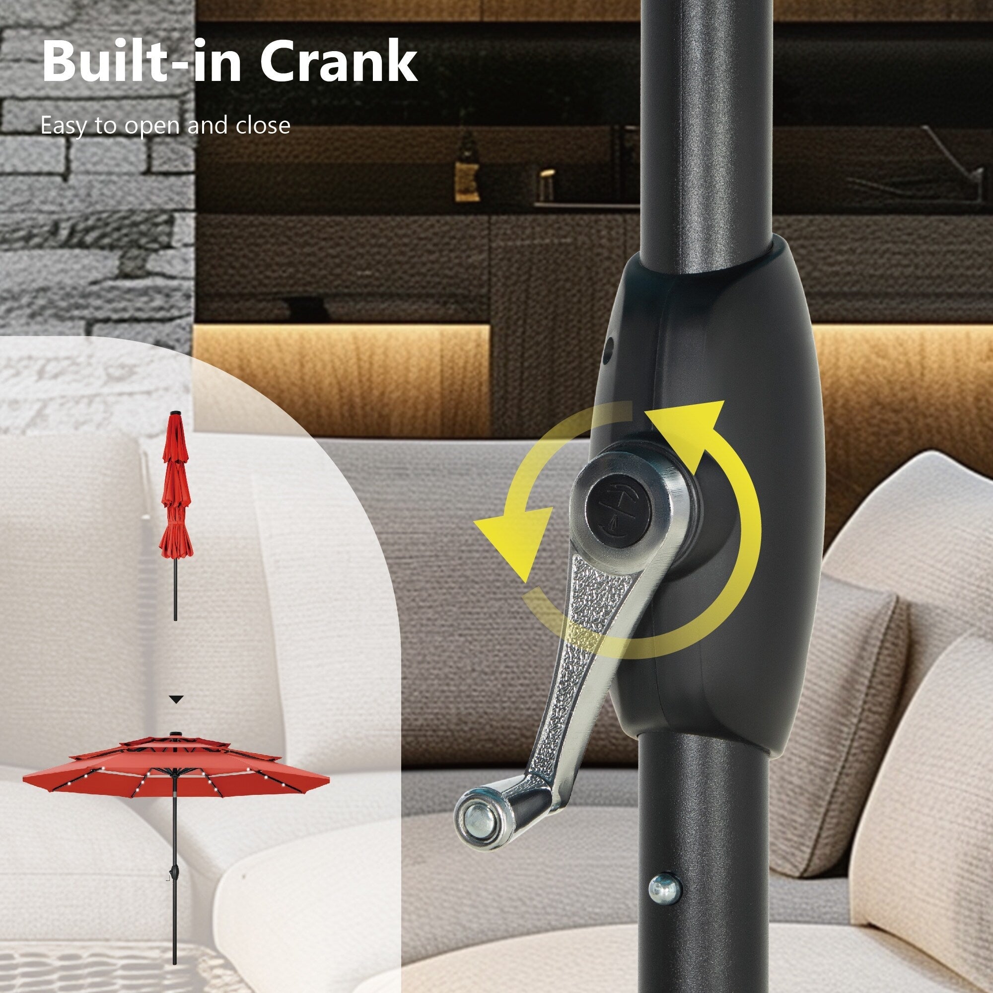 Easy Operation - Crank designed for easier opening and closing. With the auto-tilt mechanism, it's super easy for you to adjust the shading angle, providing you with a full protection from the sun or wind all the time