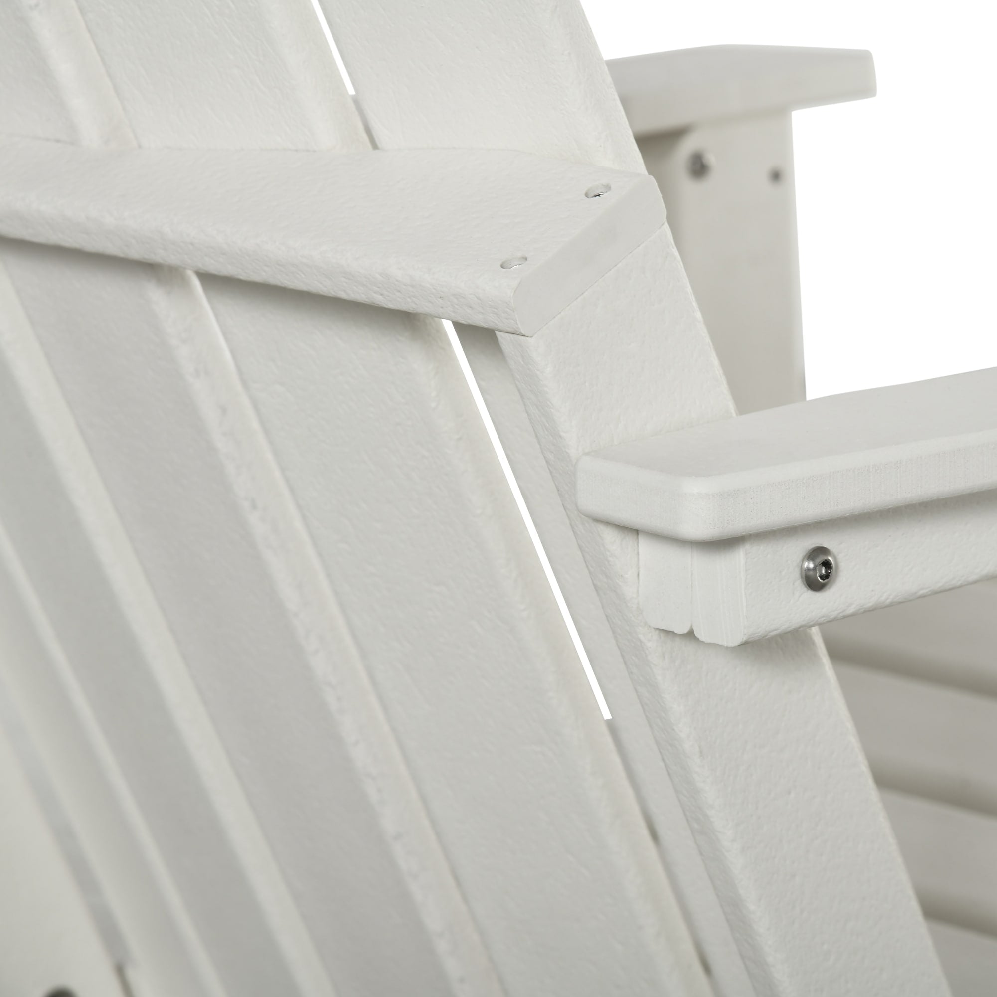 Lounge away all of your cares when you sit down on an Outsunny Adirondack chair. They come with a classic Adirondack style that folds up fast, so you can have seating as soon as you need it. Outdoor-ready, they're made of recycled faux-wood HDPE plastic that withstands water and weathering with a slatted surface to drain away rain. They have a tall curved backrest, wide armrests, and an extra wide seat so guests of all sizes can feel right at home in the outdoors. Get out, get comfortable, get Outsunny.